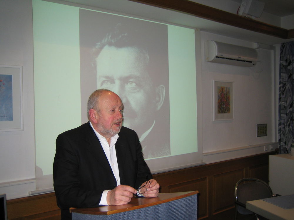 Vortragender Gernot Mitsch, im Hintergrund ist Otto Wels zu sehen