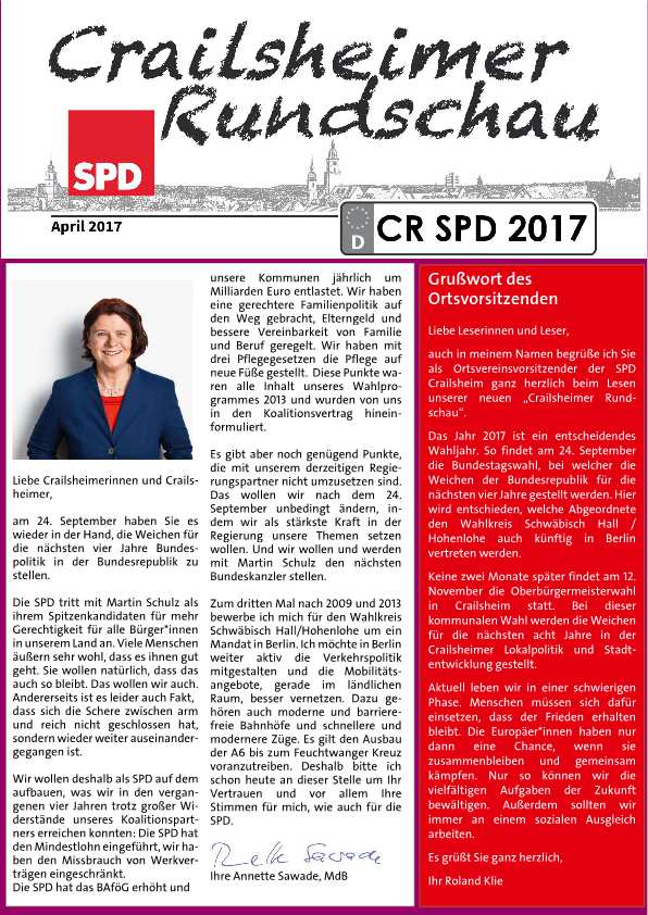 Wie im letzten Jahr haben wir uns für Sie darum bemüht, eine neue Ausgabe der Crailsheimer Rundschau zu erstellen.