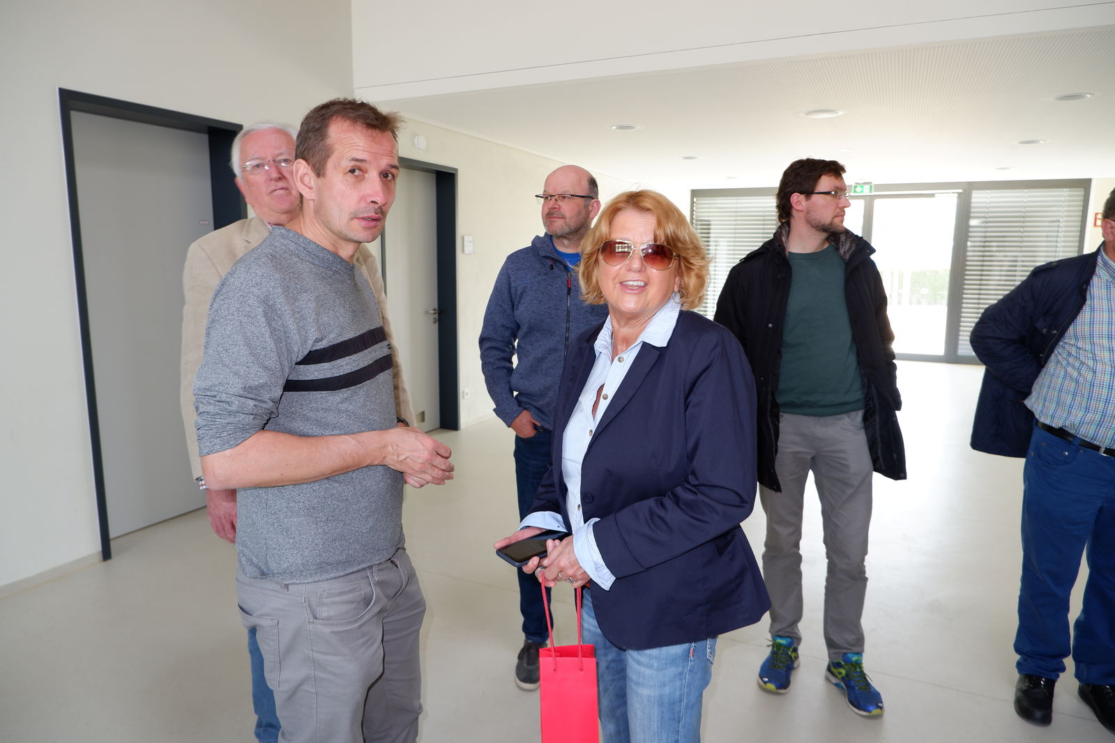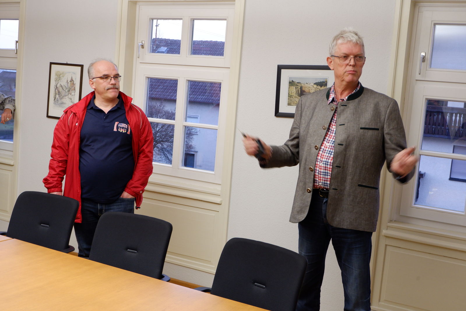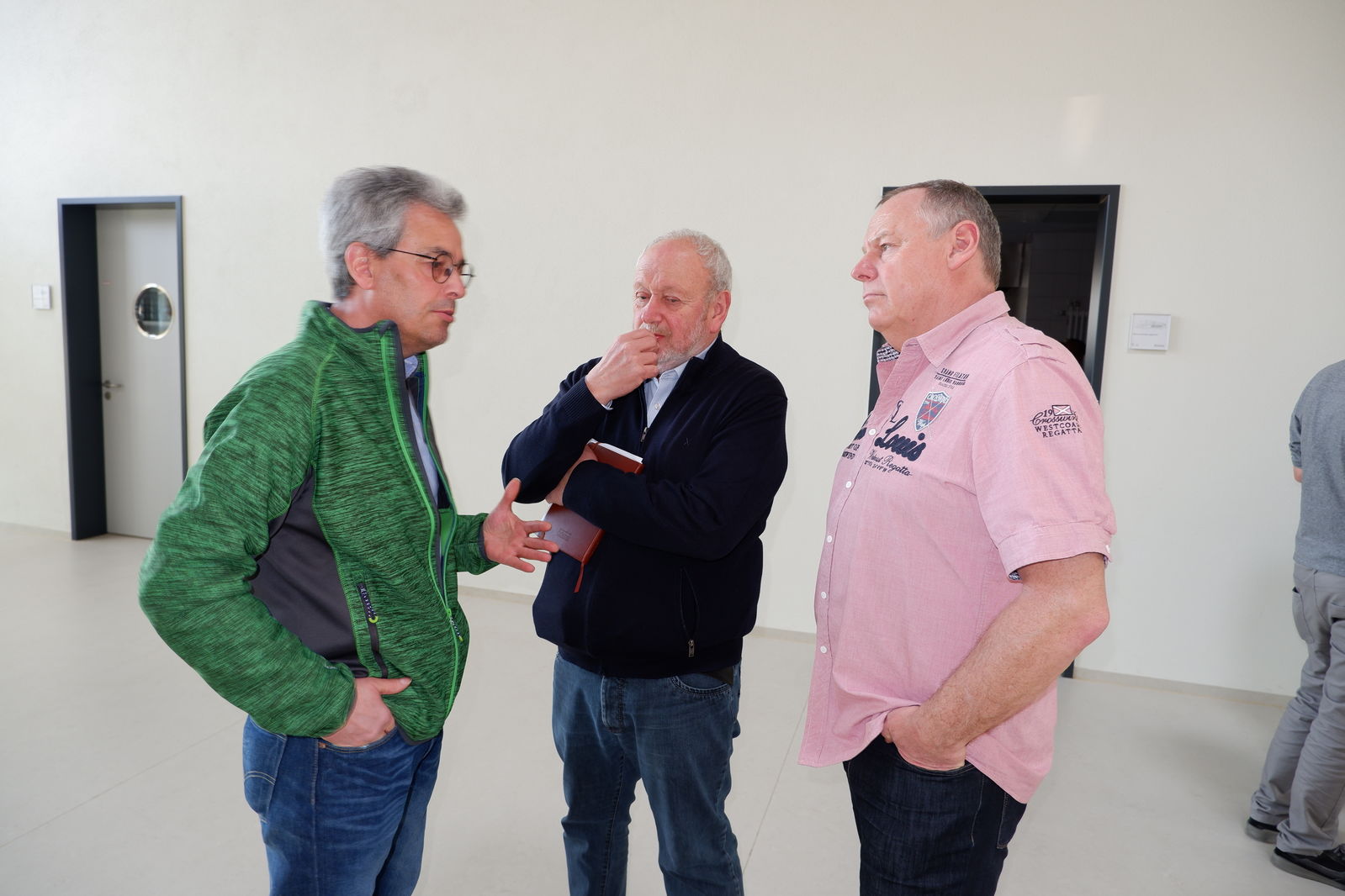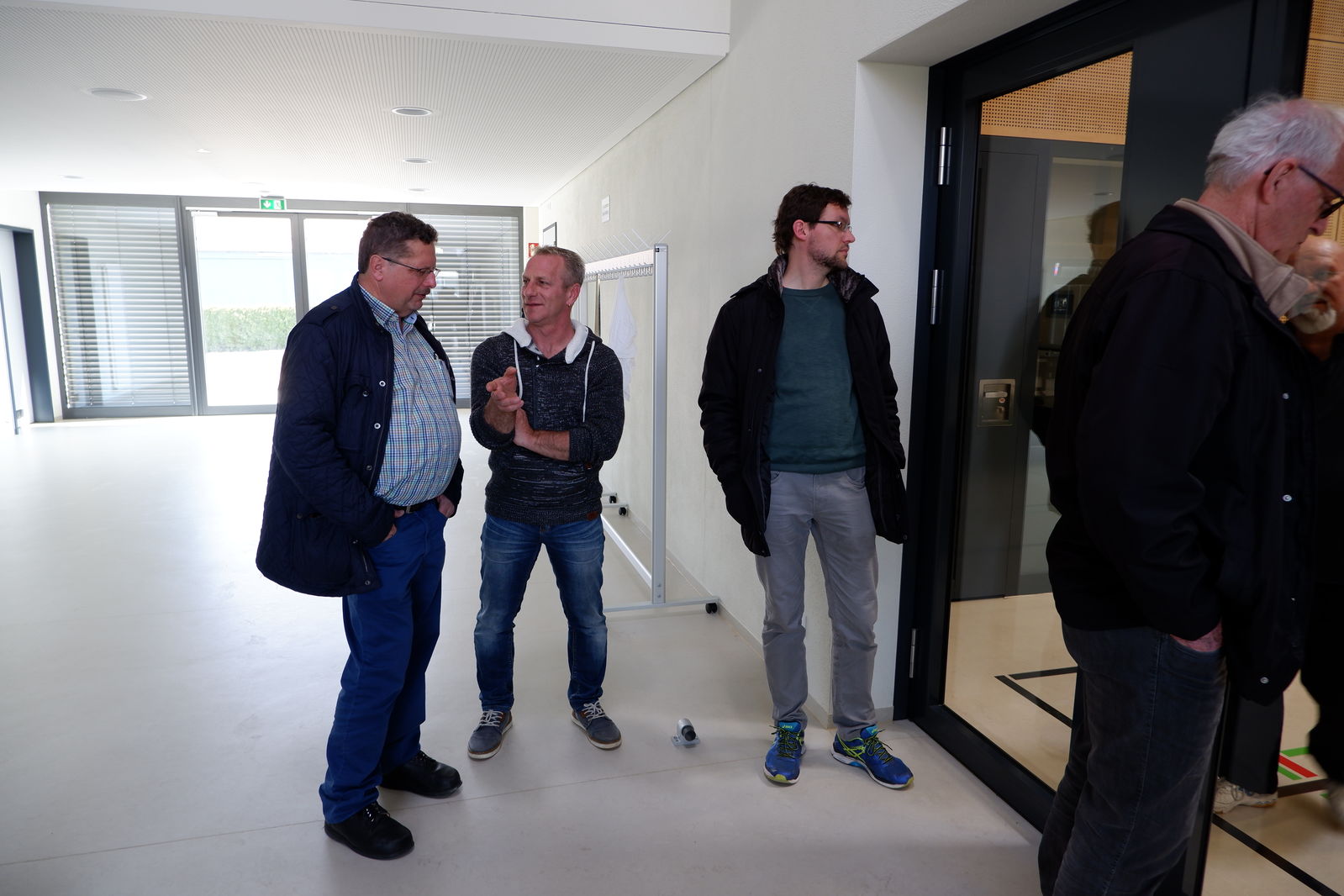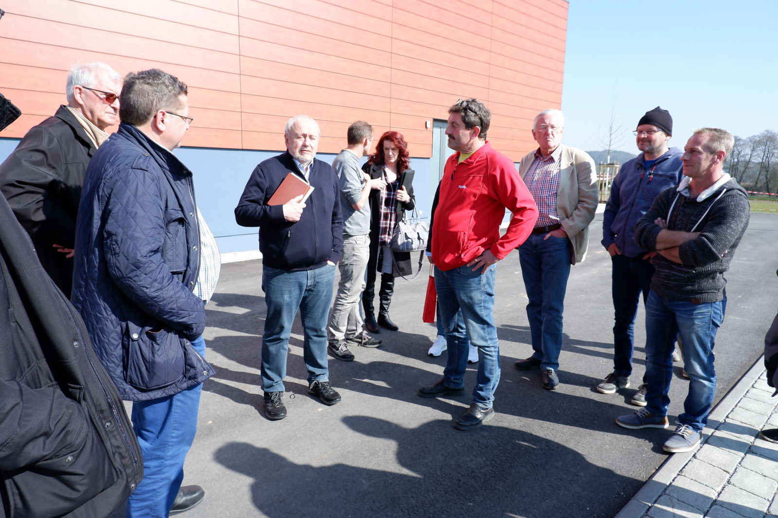 Das erste Treffen mit Ortsvorsteher Horst Philipp und den beiden Ortschaftsräten Meiser und Zeller fand vor der neuen Halle in Jagstheim statt. Die drei Jagstheimer zeigten sich sehr zufrieden mit ihrer „Jagstauenhalle“, wobei Ortsvorsteher Philipp zu verstehen gab, dass das Ganze auch billiger hätte gebaut werden können. Die Veränderungen im Kindergartenbereich, Umzug in neue Räume in der alten Schule sowie die neuen Räume für Ortschaftsrat und Ortsvorsteher wurden begrüßt.