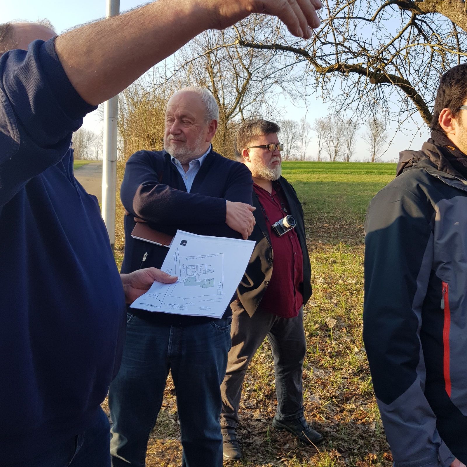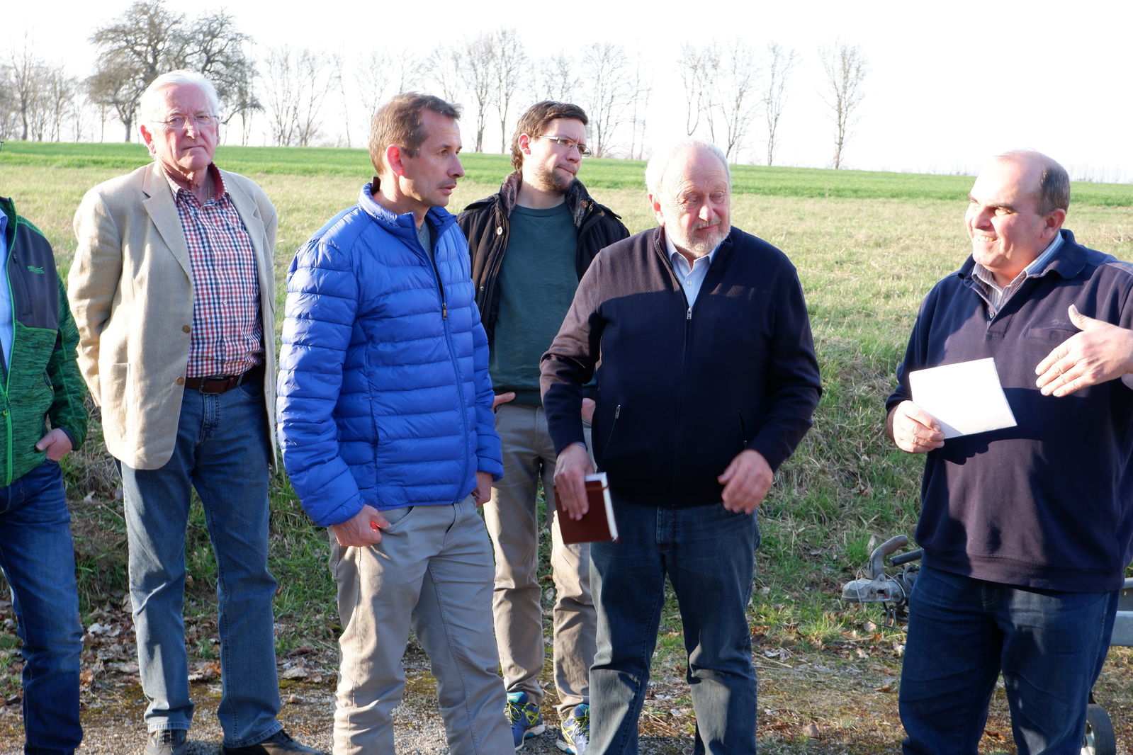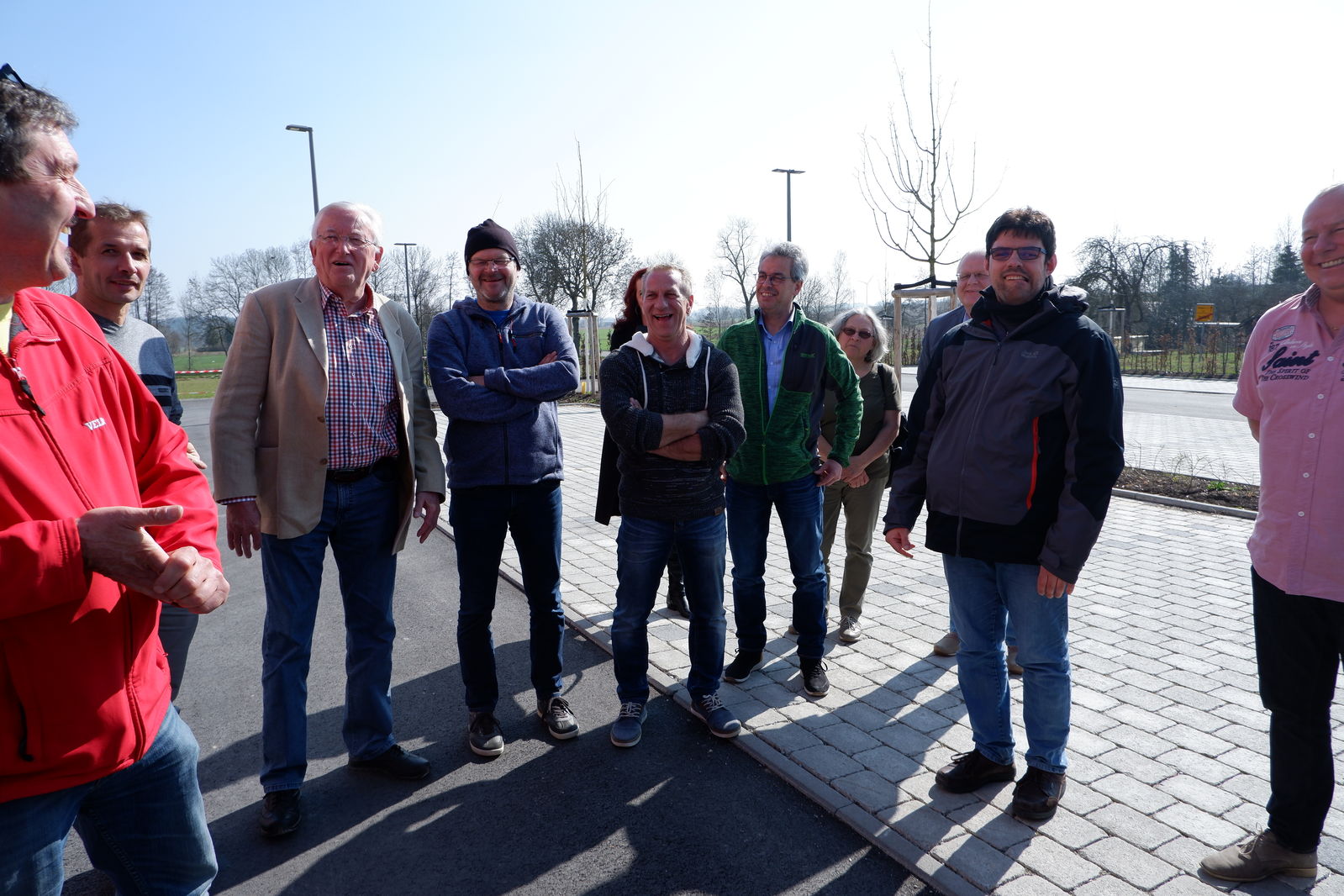 In Westgartshausen traf man sich mit Ortsvorsteher Hermann Wagner am erfolgreich renaturierten Bach. Wagner stellte das neue Baugebiet in unmittelbarer Nähe des Bachverlaufs vor, sprach über Hochwasserprobleme und die Problematik innerörtlichen Baupotenzials, das nicht zur Verfügung gestellt wird. Mit eine Ursache für großen Flächenverbrauch! Auf Nachfrage kam auch noch einmal die andiskutierte Verlegung des RFC nach Westgartshausen und die dann folgende Entscheidung für Tiefenbach zur Sprache.