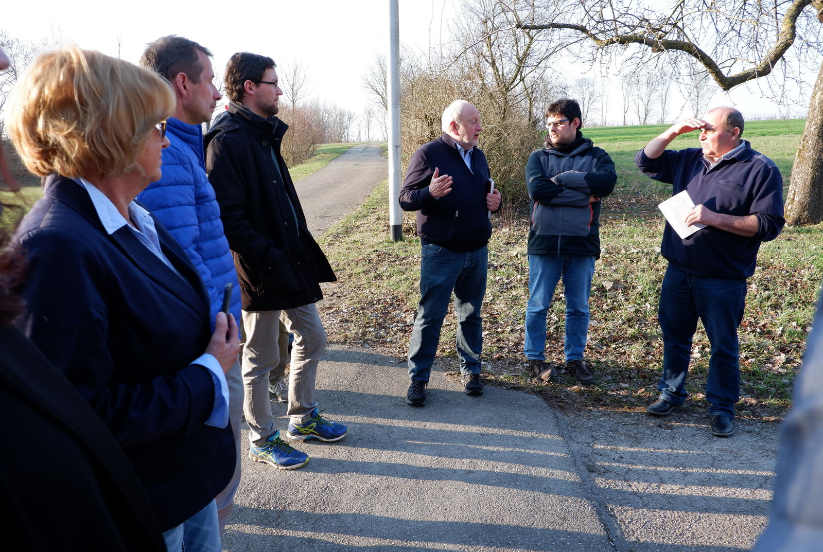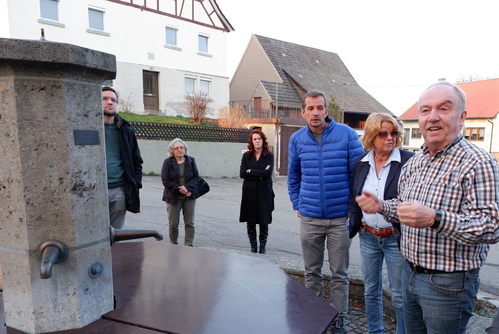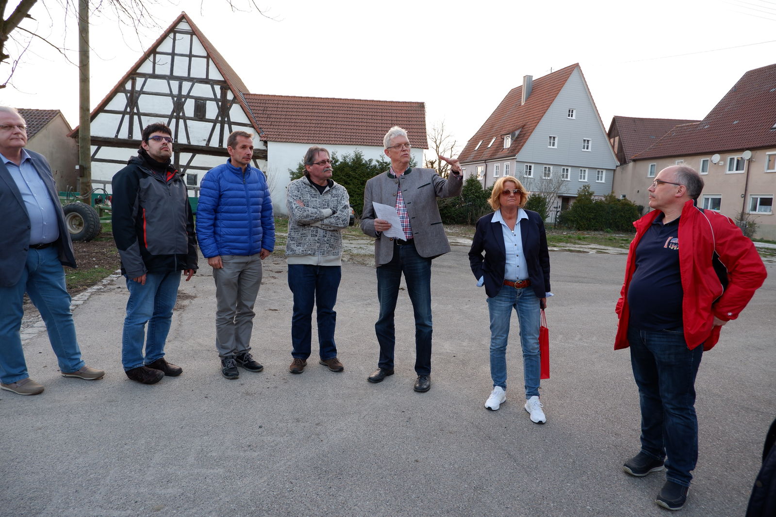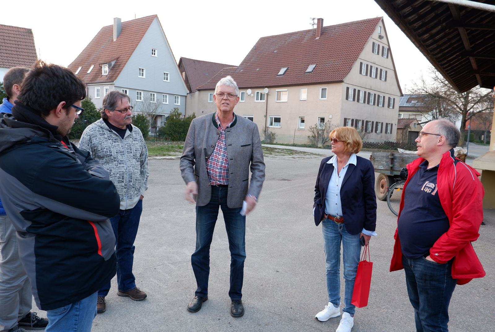 Letzte Station der Rundreise durch die Crailsheimer Stadtteile war Tiefenbach. Am Treffpunkt an der alten Schule warteten Ortsvorsteher Frierich Lober zusammen mit seinem Stellvertreter Harald Hügelmaier auf die Kandidatinnen und Kandidaten. Das der Schule gegenüberliegende Gelände der ehemaligen Volksbank bietet in Tiefenbach ideales innerörtliches Entwicklungspotenzial für Verschiedenes. Allerdings gibt es noch keine konkreten Pläne. Das neue Tiefenbacher Baugebiet wird gerade erschlossen, wusste Ortsvorsteher Lober zu berichten. Auch in Tiefenbach war das Gewerbegebiet Härtle Thema. Hier gilt die Sorge der Zukunft der Tiefenbacher landwirtschaftlichen Betriebe. SPD Fraktionsvorsitzender Gernot Mitsch stellte an dieser Stelle die Problematik zwischen Flächenverbrauch einerseits und dem Wunsch nach wirtschaftlichem Wachstum andererseits dar. „Dies ist eine Zukunftsaufgabe, der sich der neue Gemeinderat unbedingt stellenmuss!“