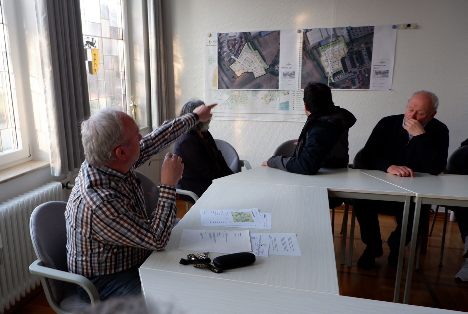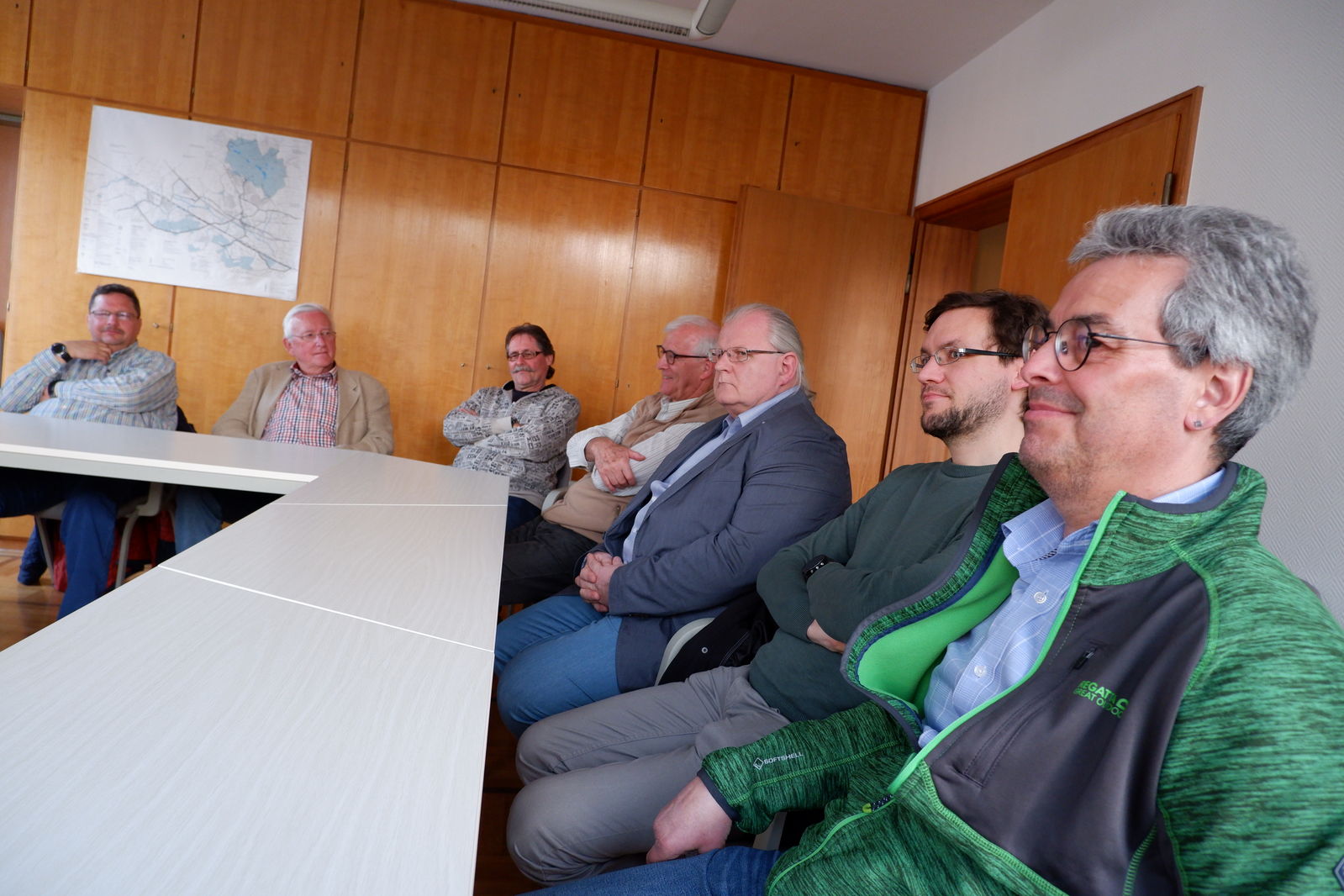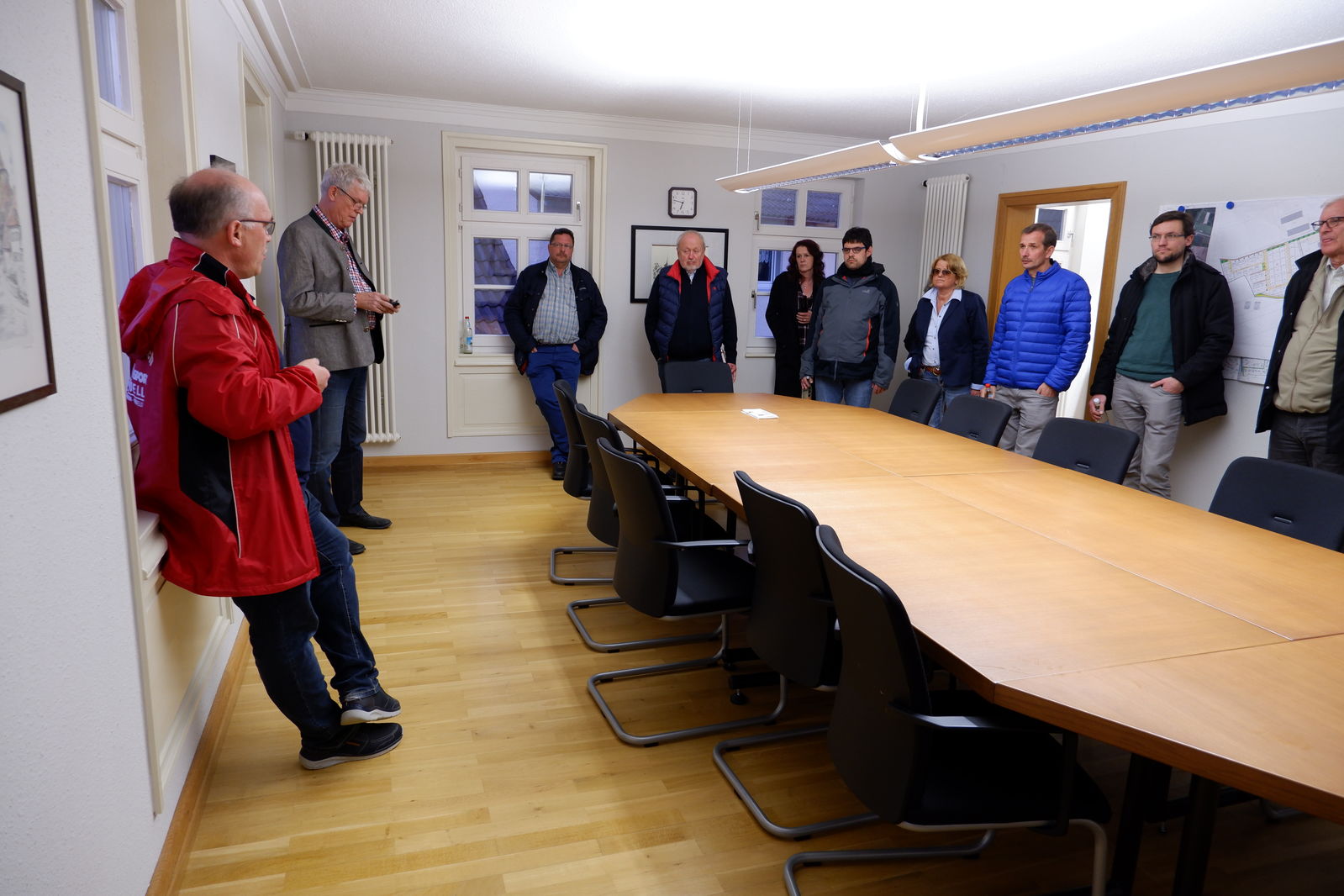 Das nächste Ziel wäre dann Rossfeld. Hier wartete Ortsvorsteher Hartmut Werny. Im Sitzungssaal des ehemaligen Rathauses ging er auf die Situation in Rossfeld ein. Drei Themen standen dabei im Zentrum seiner Ausführungen. Er stellte die beiden neuen Baugebiete vor, zeigte deren Lage und betonte ihre Notwendigkeit. Das für Rossfeld daneben besonders wichtige Thema Verkehr im Zusammenhang mit im sog. Härtle entstehenden neuen Gewerbegebiet, mit dem sich sowohl Rossfelder wie auch Tiefenbacher auseinandersetzen müssen, lag ihm besonders am Herzen. Mit den SPD KandidatInnen war er sich einig, dass die Nutzung weiterer Flächen für Gewerbeansiedlungen nur in Verbindung mit dringend notwendigen Verkehrslösungen möglich sein dürfen. Zum Schluss