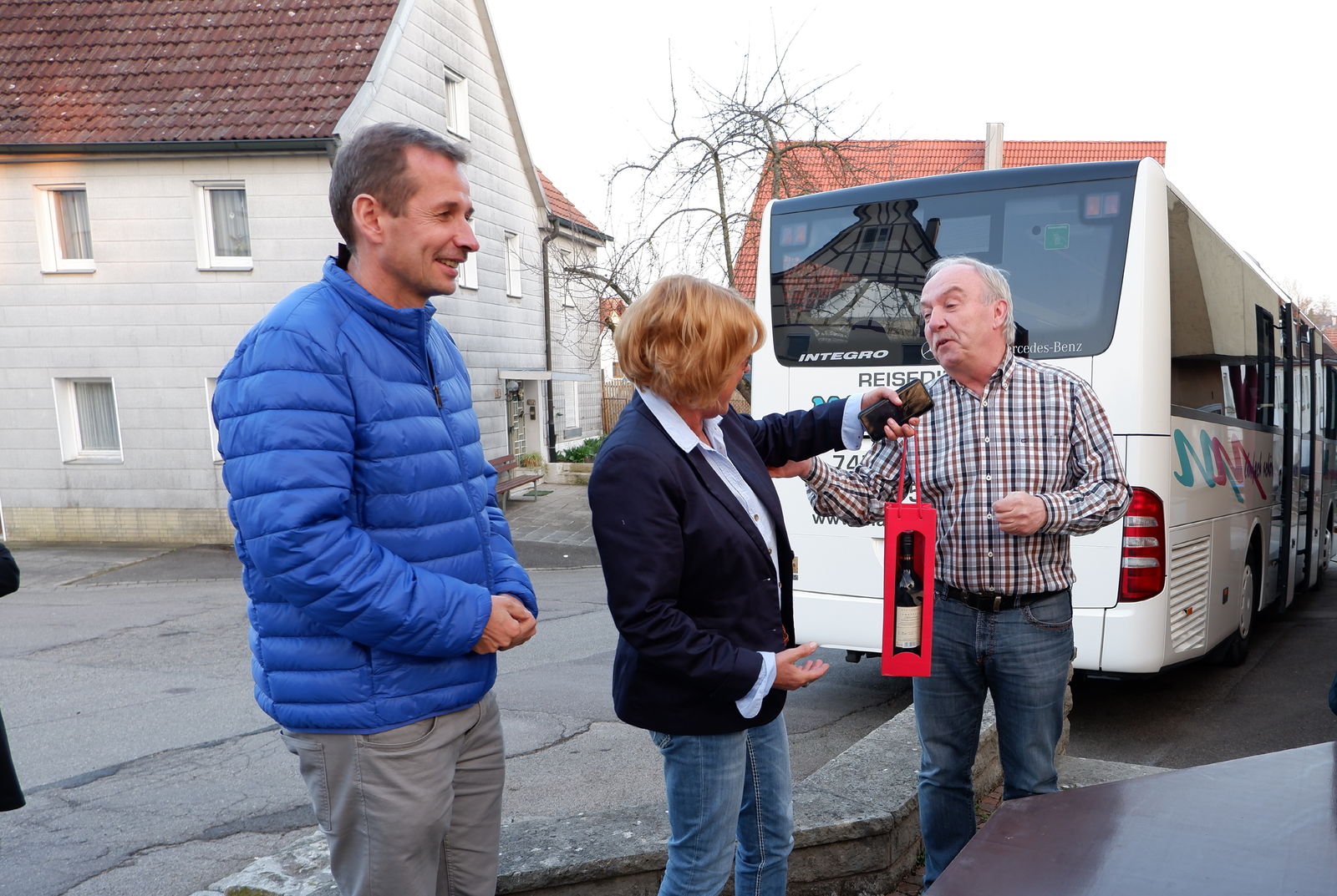 Am Ende jedes Besuchs überreichte Helga Hartleitner jedem Ortsvorsteher als kleinen Dank für den freundlichen Empfang und die informativen Gespräche eine „Flasche Roten von den Roten“. Organisator und SPD Vorsitzender Roland Klie schloss sich dem Dank an und resümierte, dass die „Tour“ durch die direkte Anschauung vor Ort und die Ausführungen der Ortsvorsteher ein voller Erfolg war.