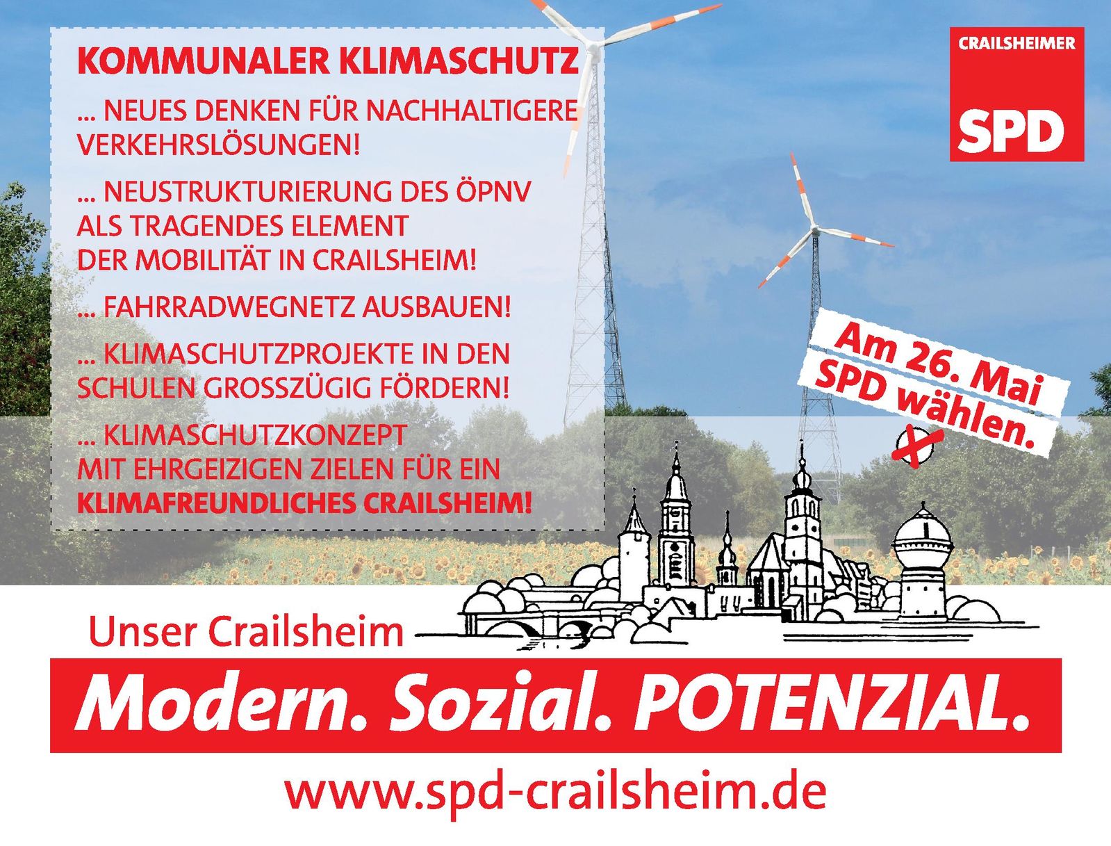 In weniger als sechs Wochen findet die Kommunalwahl auch in Crailsheim statt. Wir schalten jeden Donnerstag eine Anzeige im Crailsheimer Stadtblatt, um über unsere Positionen zu informieren. Den Beginn macht das Thema: "Kommunaler Klimaschutz"!